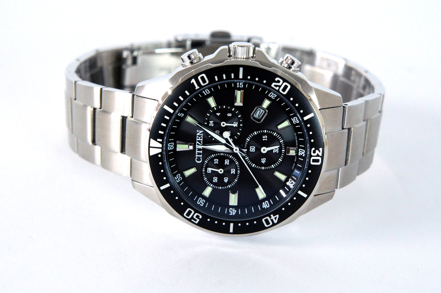 Citizen Eco-Drive Chronograph Men’s Watch – Stainless Steel, Black Dial, H500-S064538