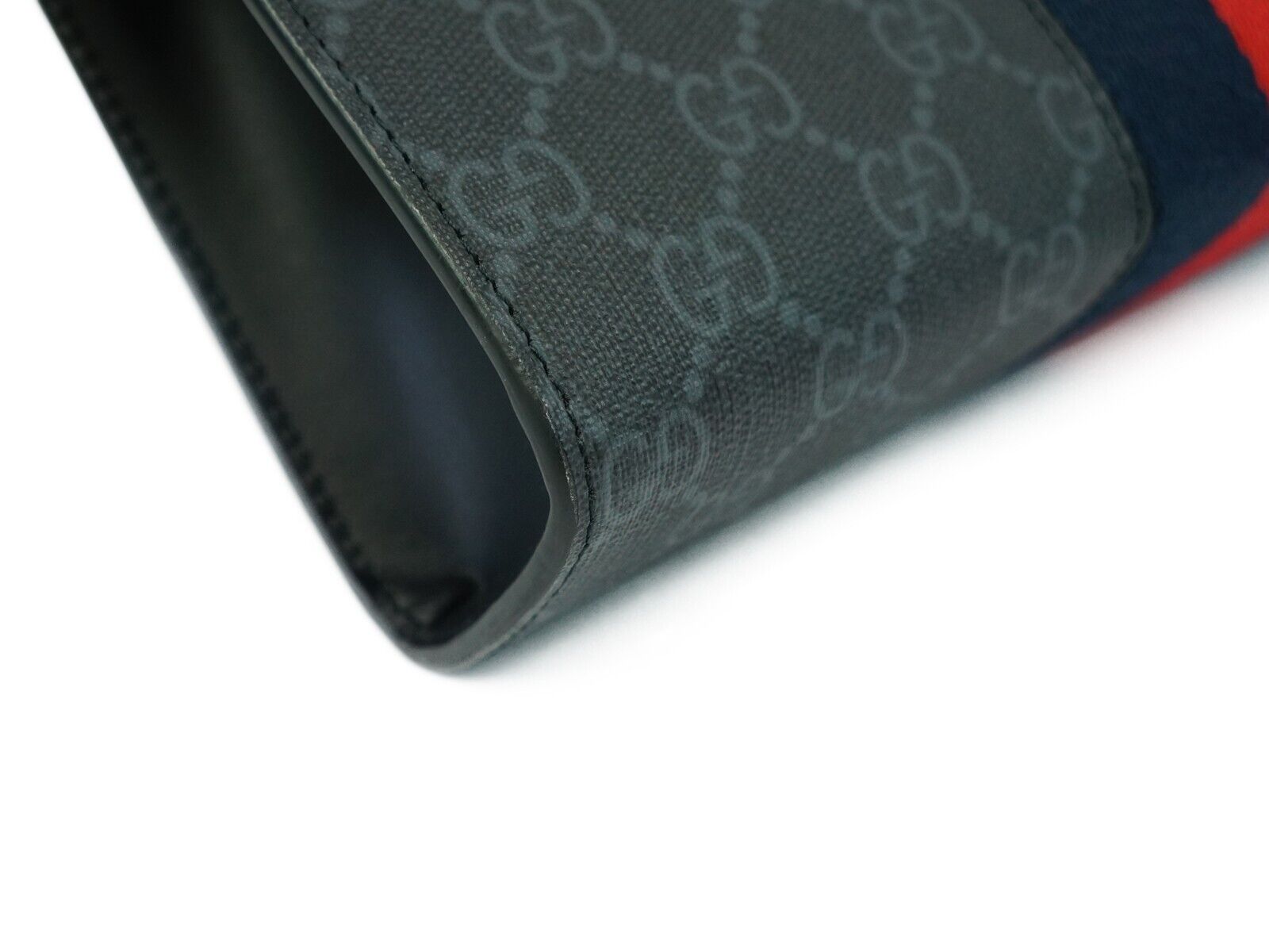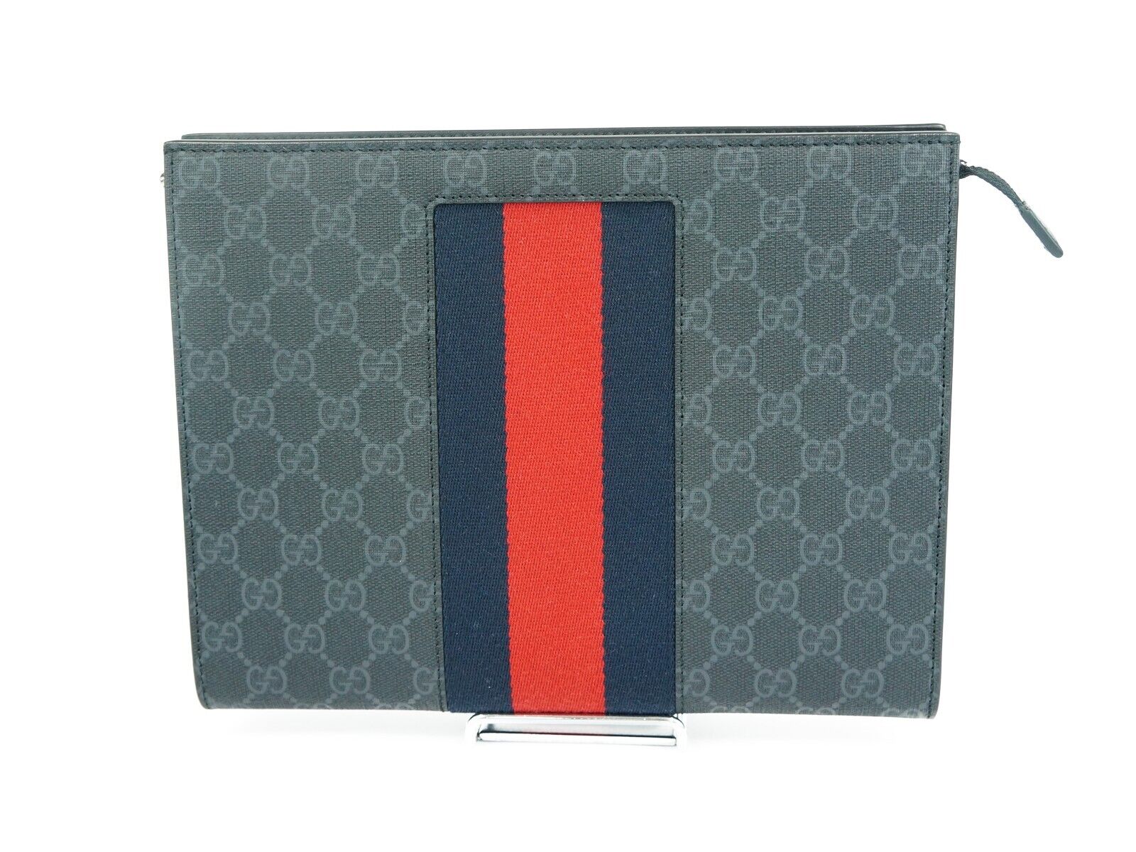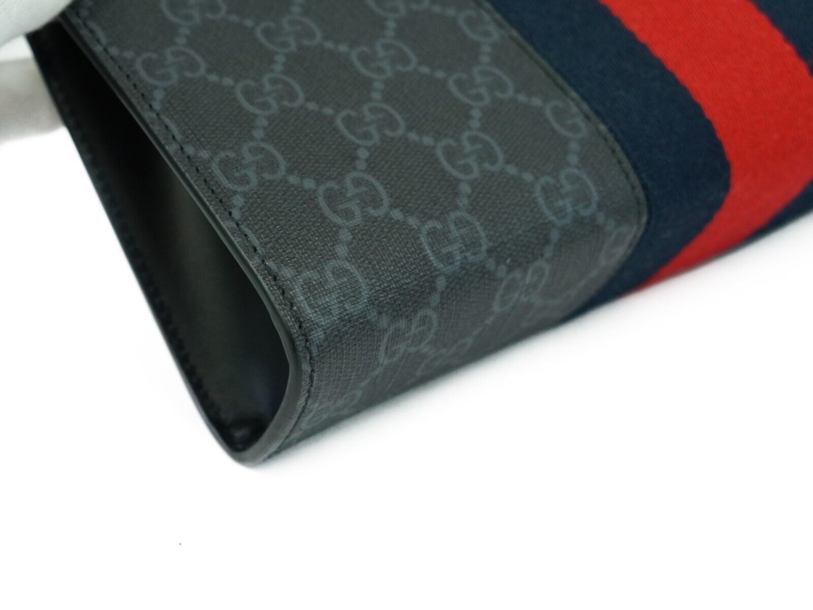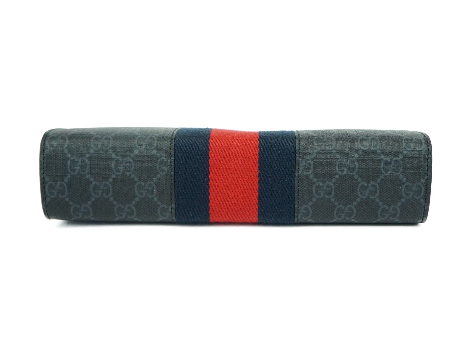 GUCCI GG Supreme Sherry Line GG Web PVC Canvas Leather Black Clutch Bag "Free shipping"