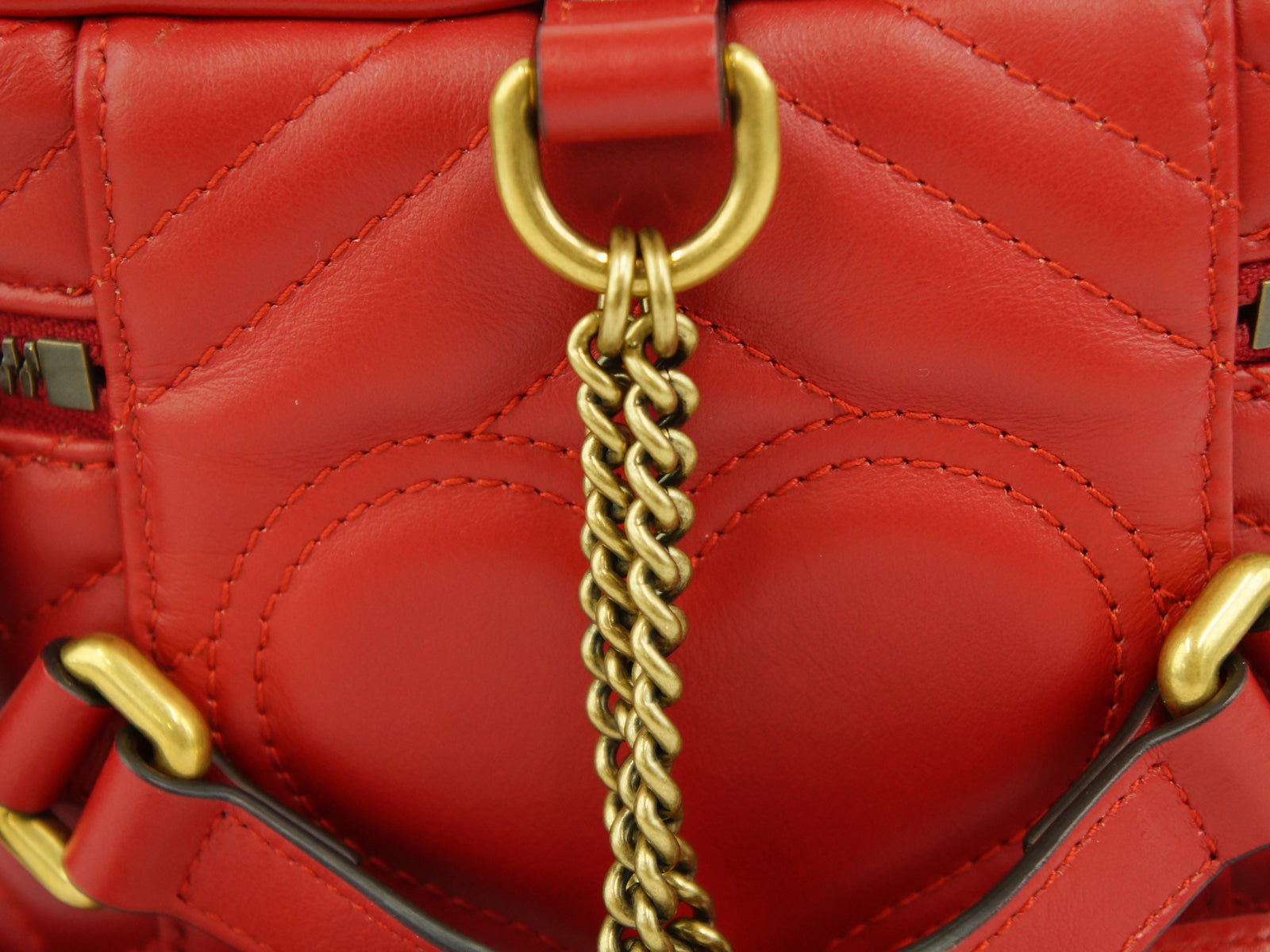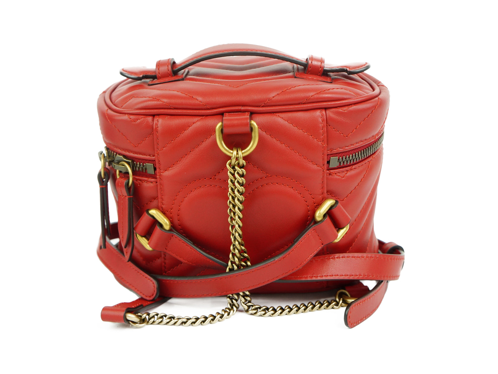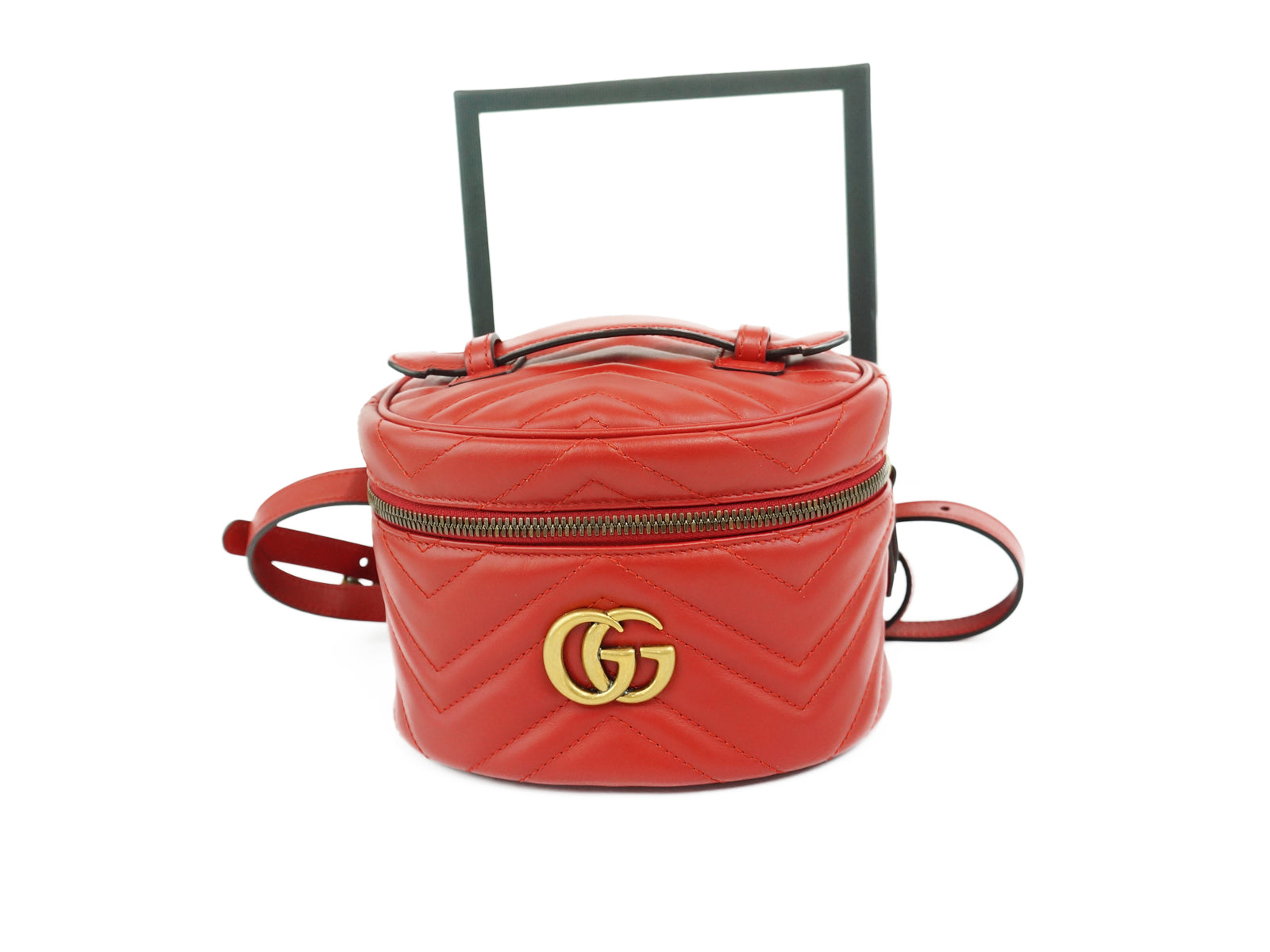 GUCCI Marmont Quilting Leather Red Mini Round Vanity Backpack Bag "Free shipping"