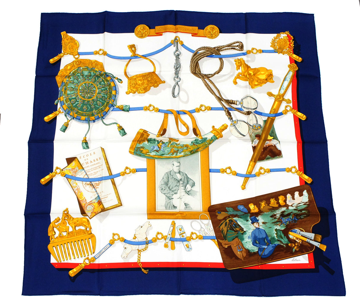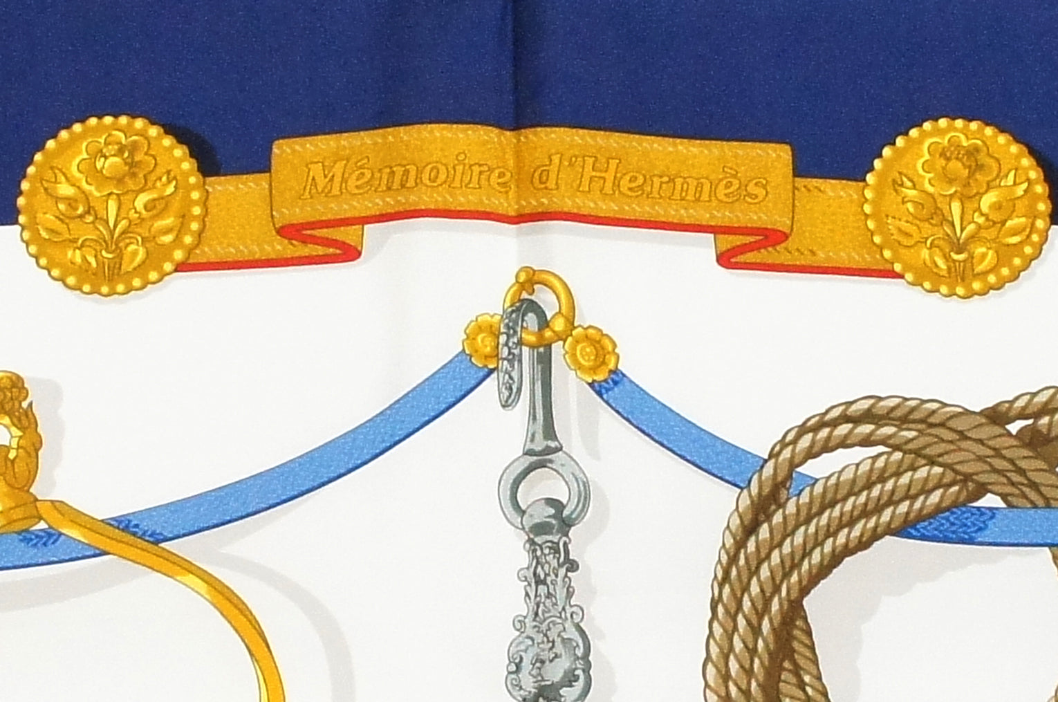 Hermes Carre 90 "Memoire d'Hermes" Silk Scarf in Navy and Multicolor / Free shipping