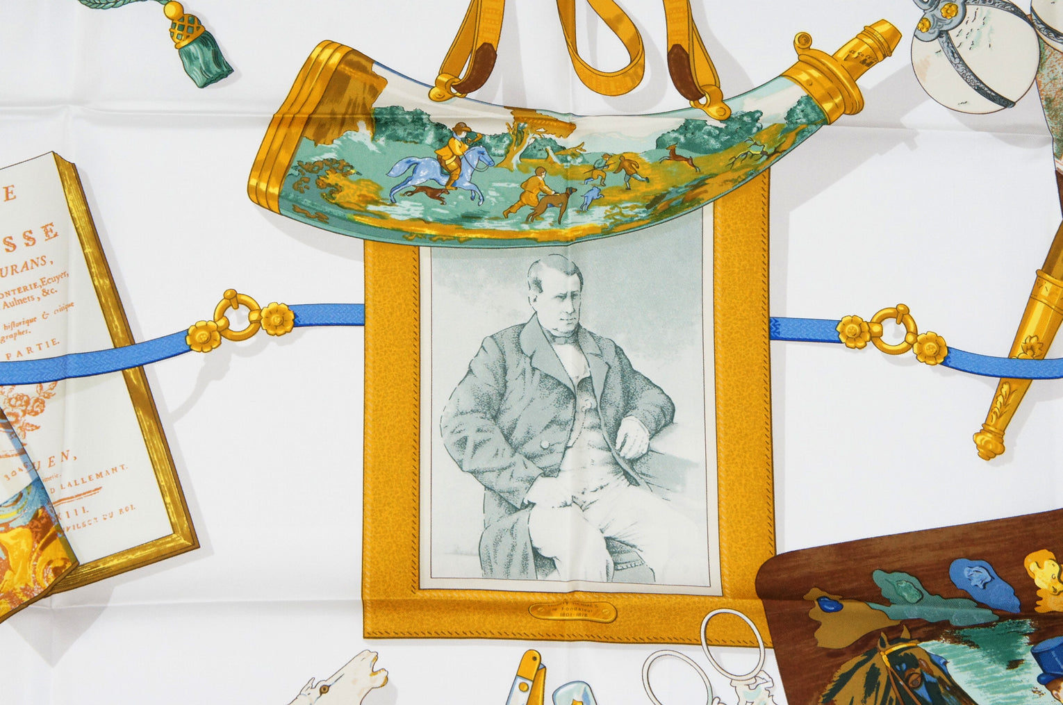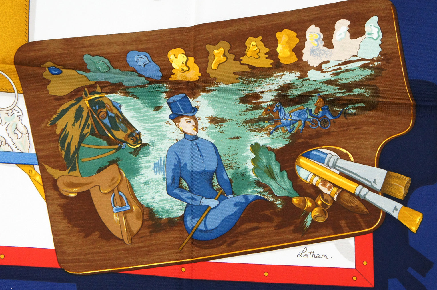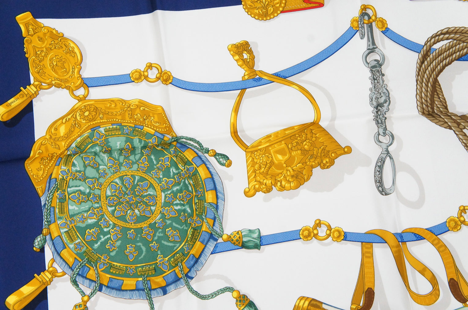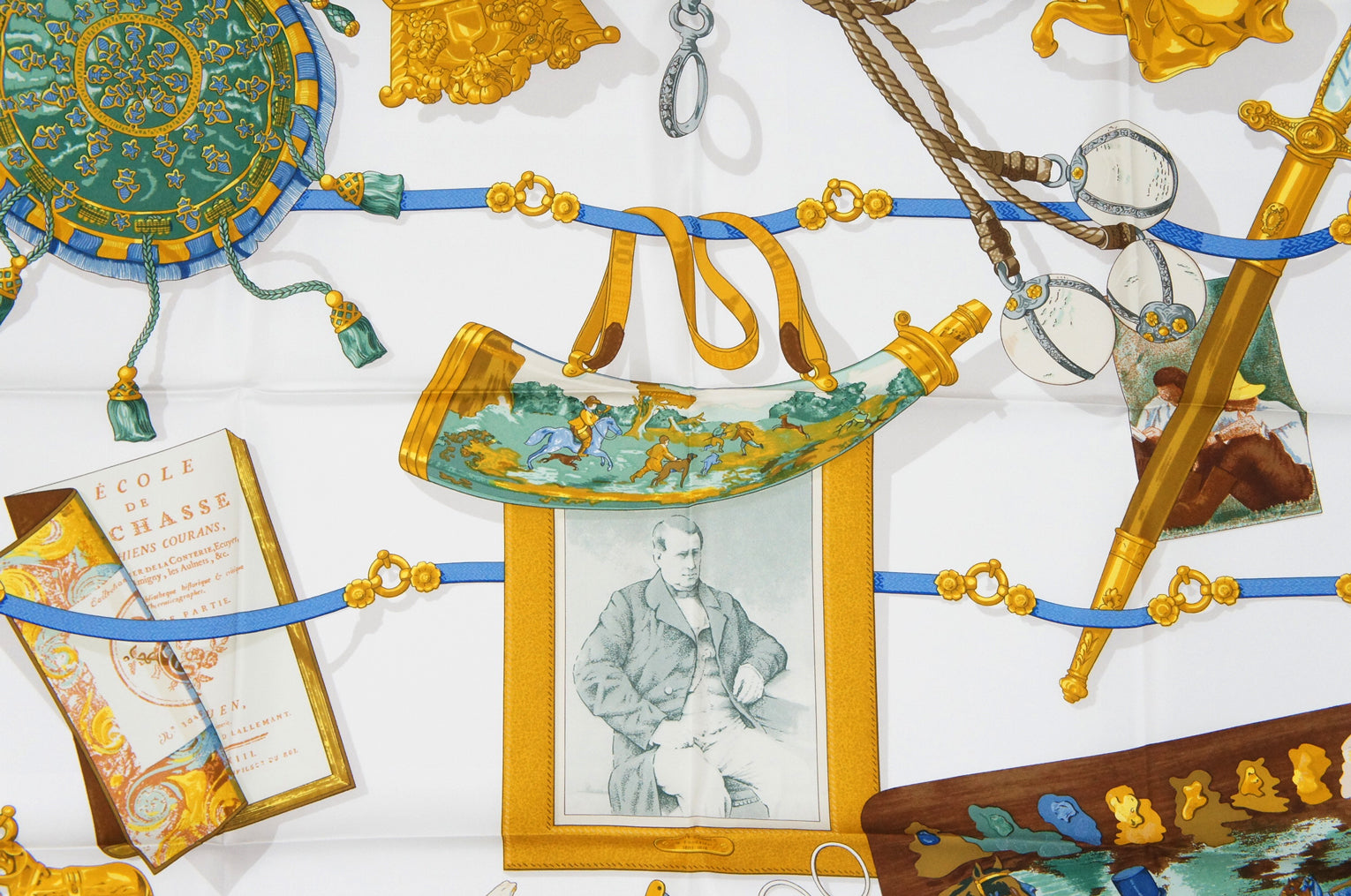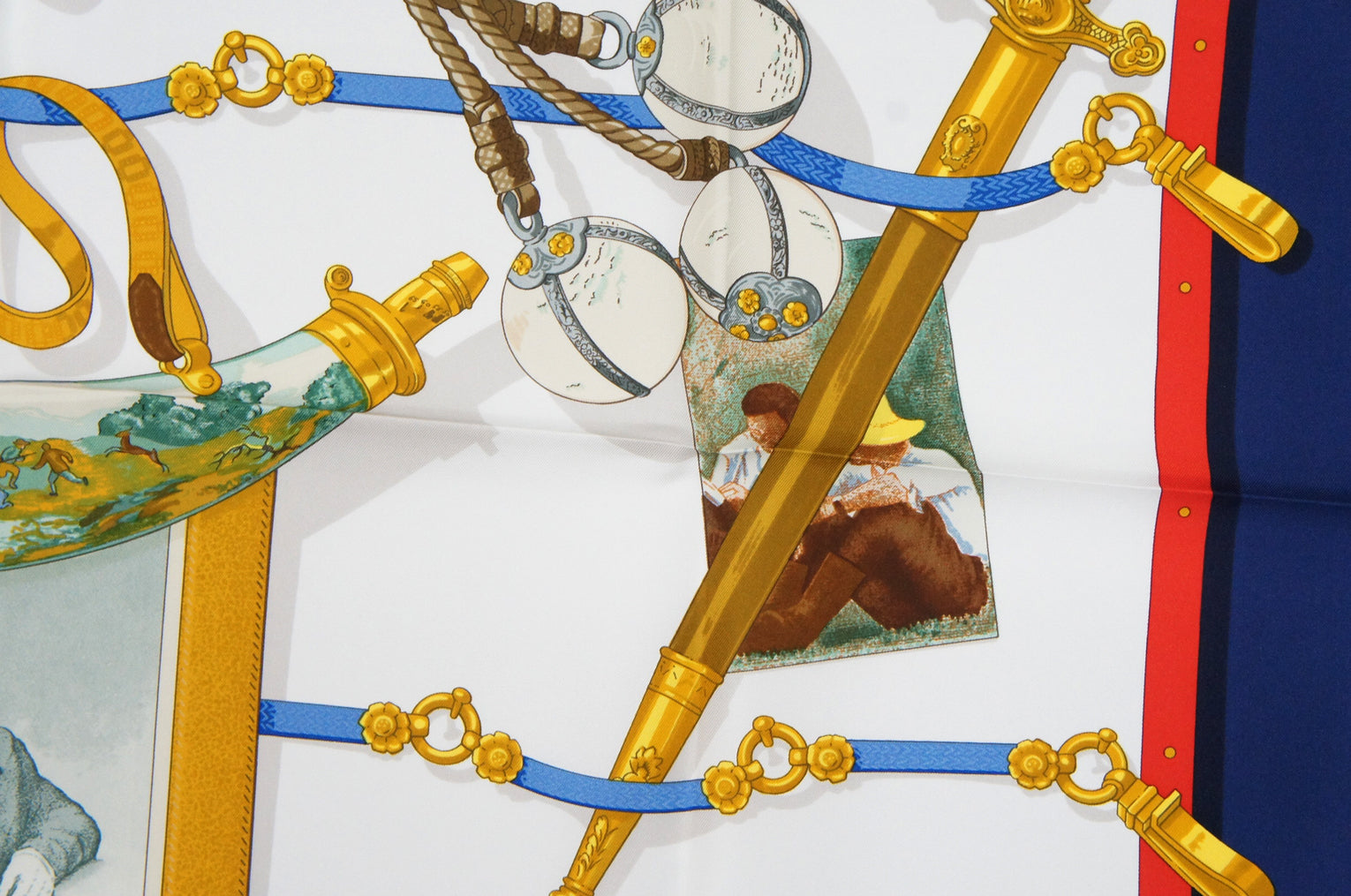 This Hermes Carre 90 "Memoire d'Hermes" is an artistic celebration of the brand's heritage. Adorned with iconic Hermes motifs and workshop scenes, this scarf is a wearable piece of history.