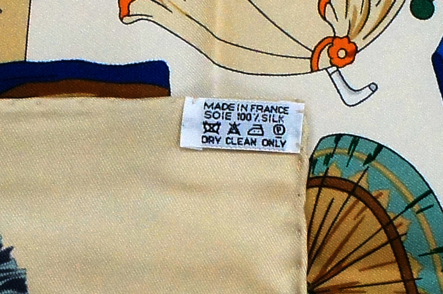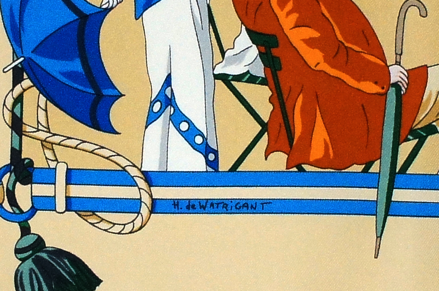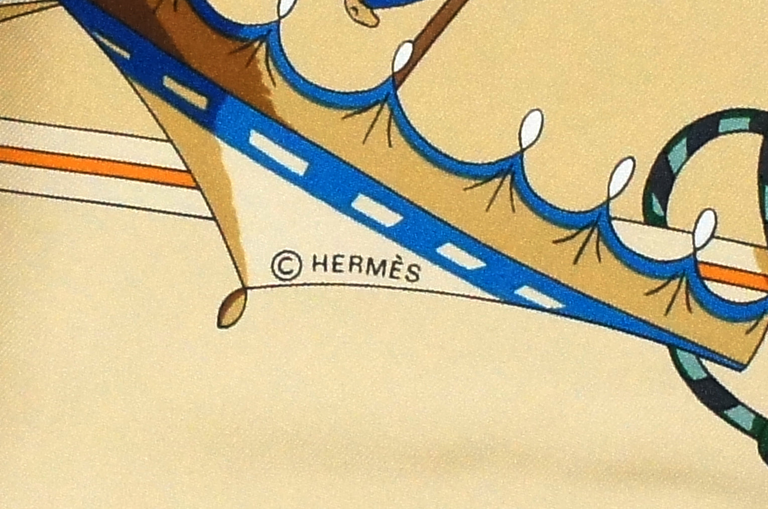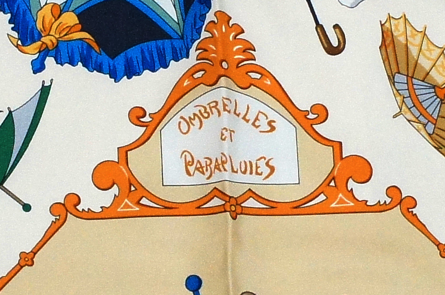 Hermes Carre 90 "Ombrelles et Parapluie" Silk Scarf in Beige and Multicolor