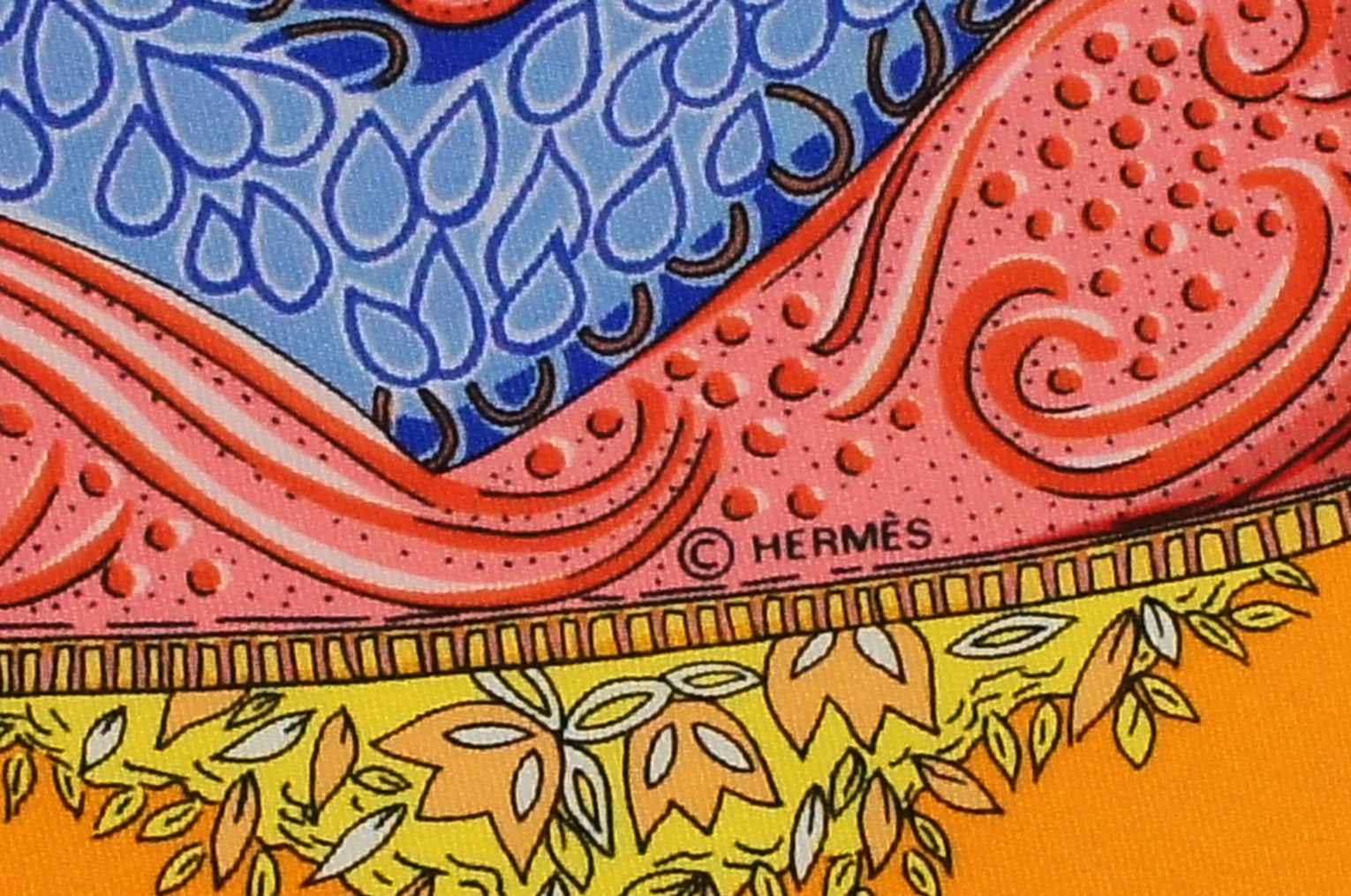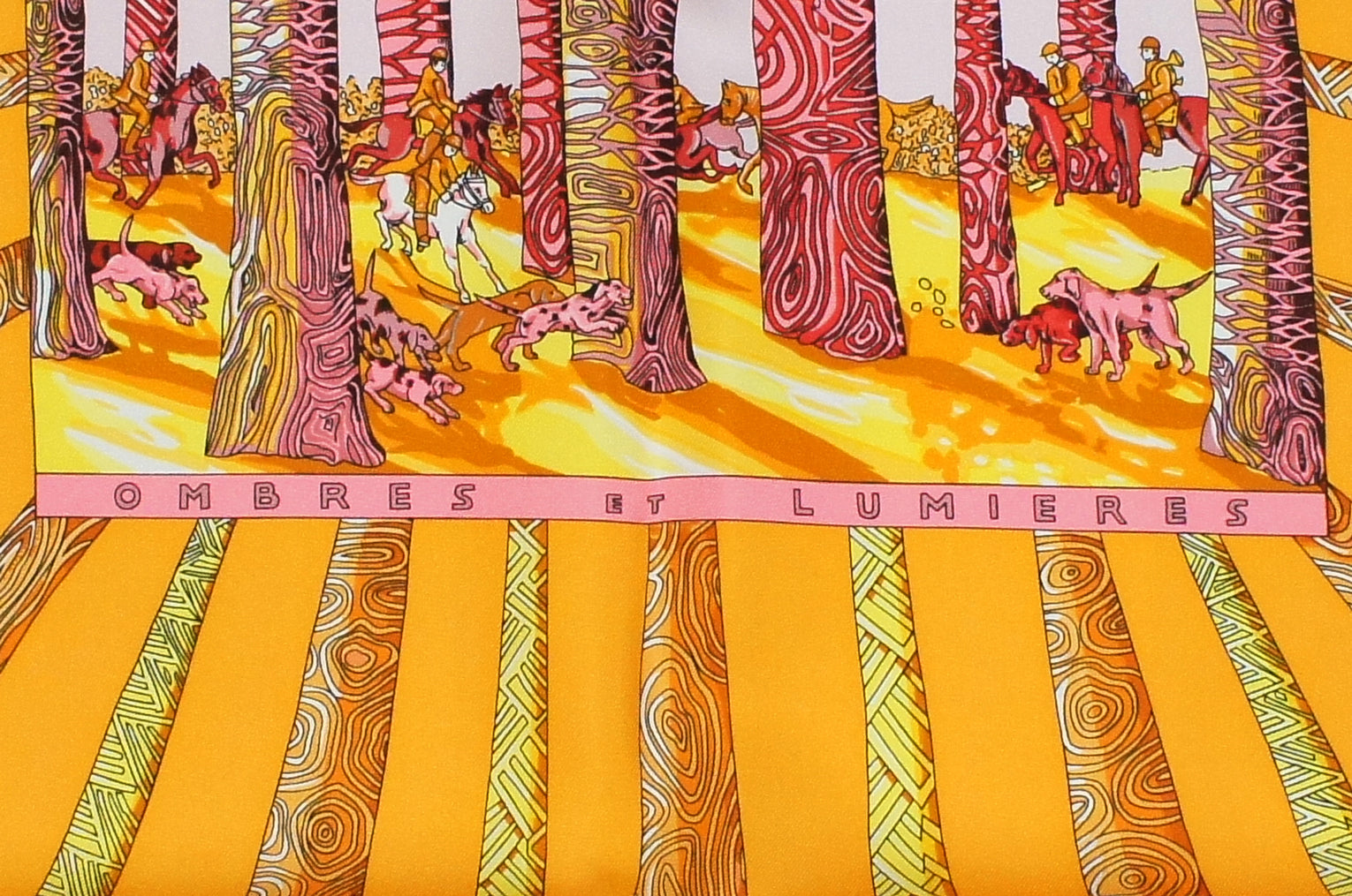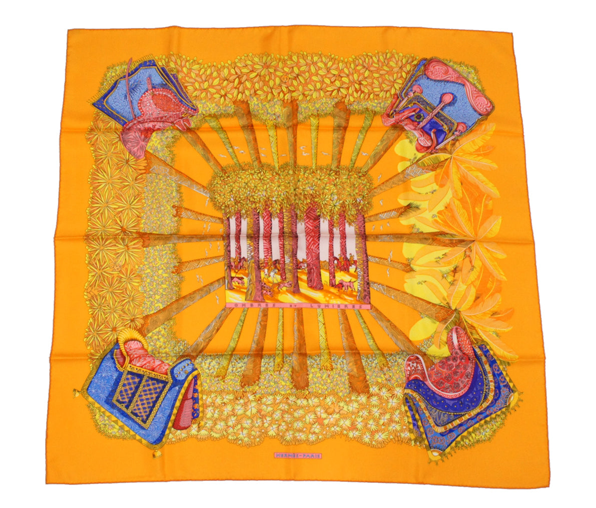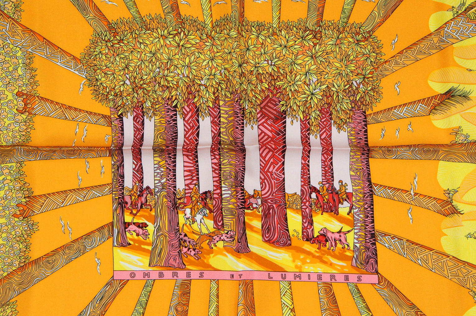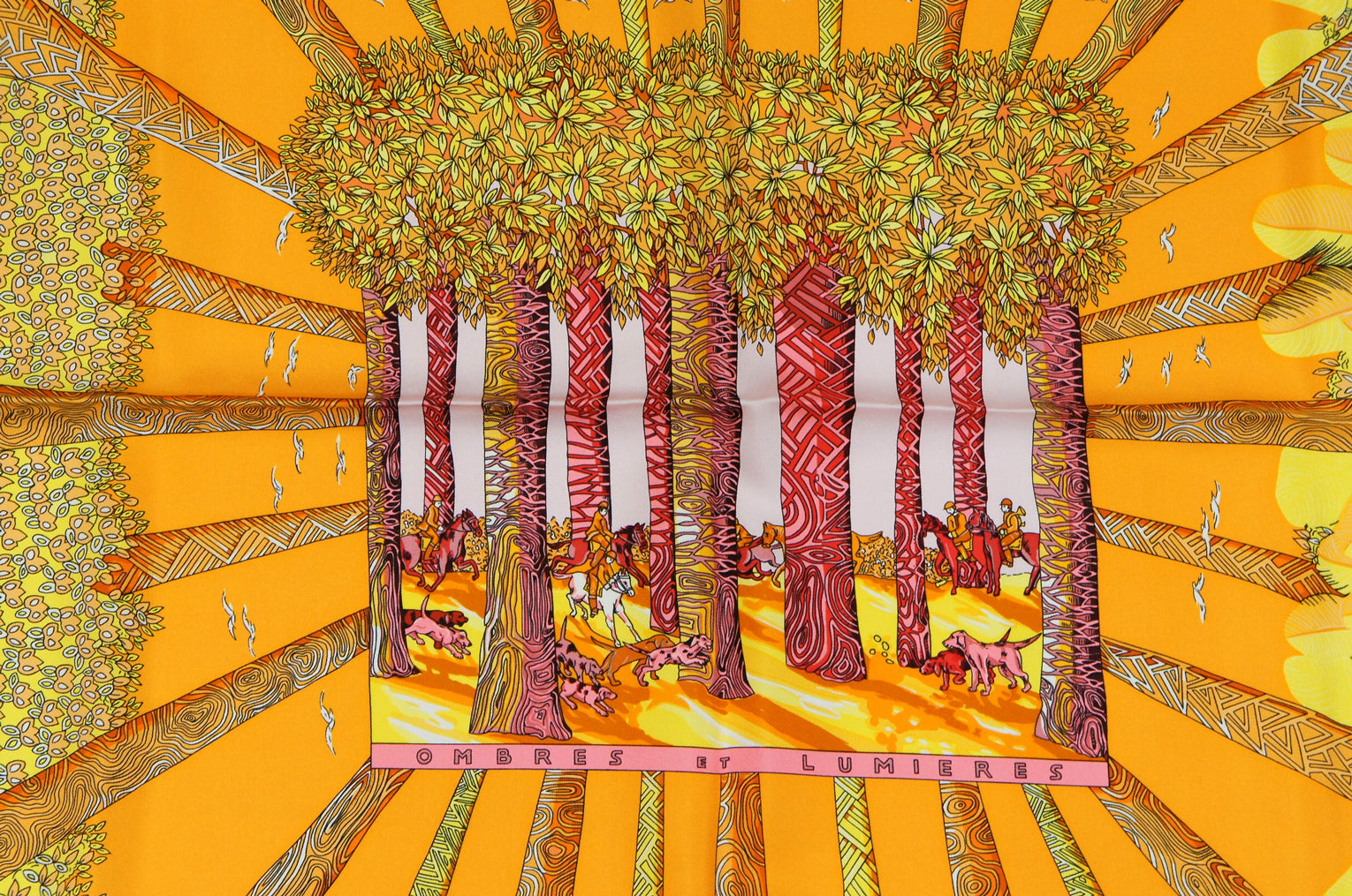 Hermes Carre 90 "Ombres et Lumieres" Silk Scarf in Orange and Multicolor