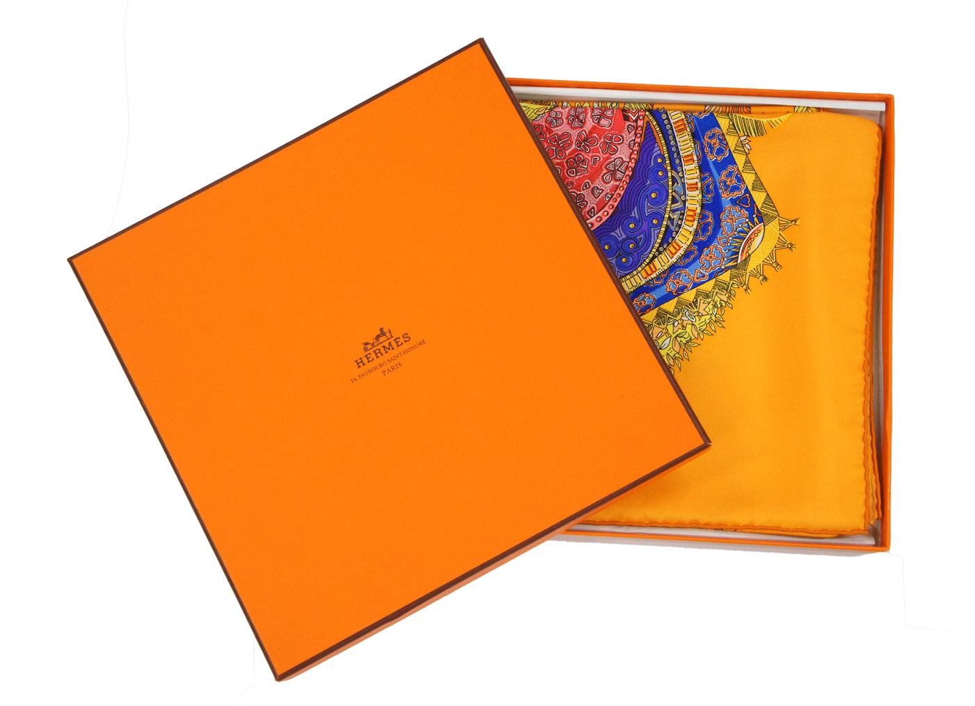 Hermes Carre 90 "Ombres et Lumieres" Silk Scarf in Orange and Multicolor / Free shipping