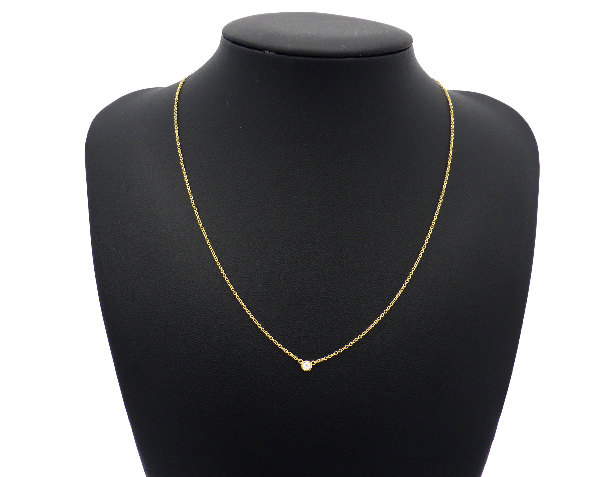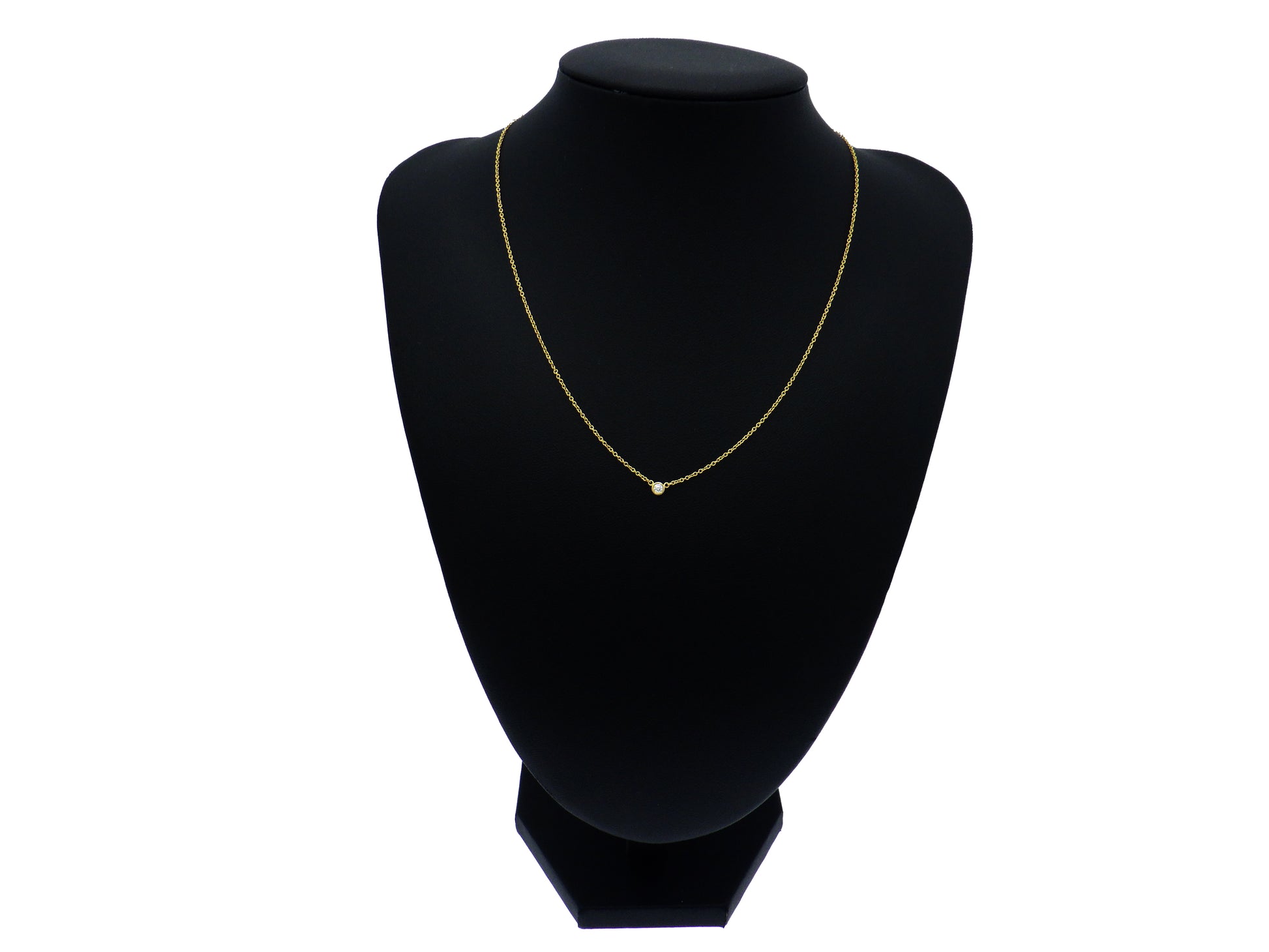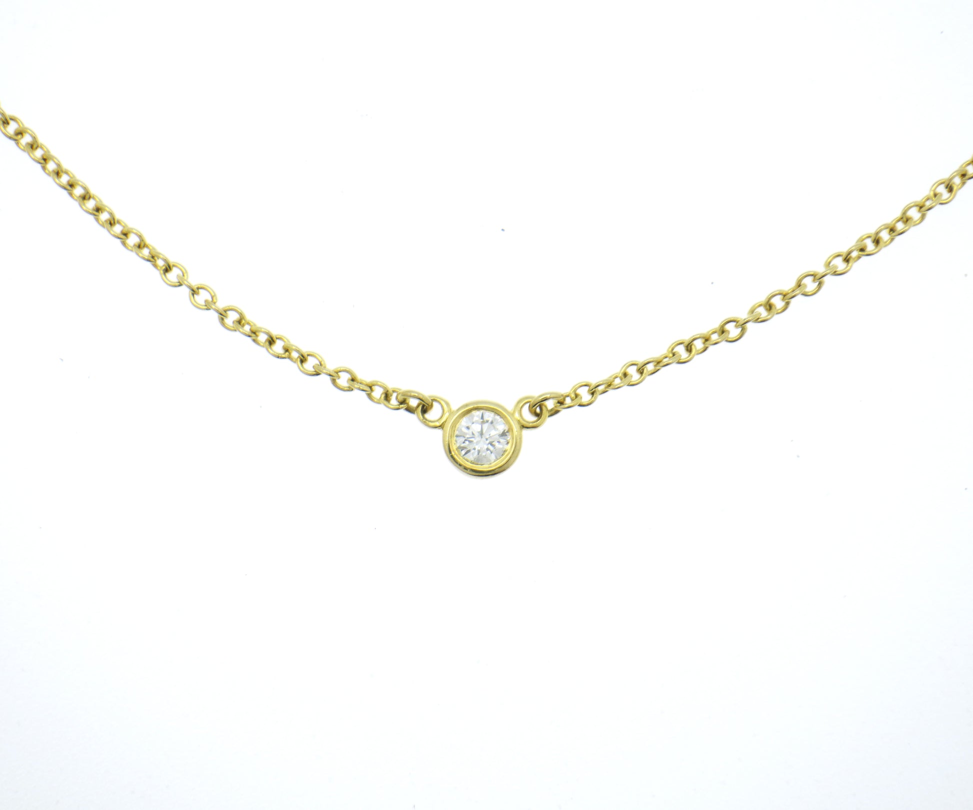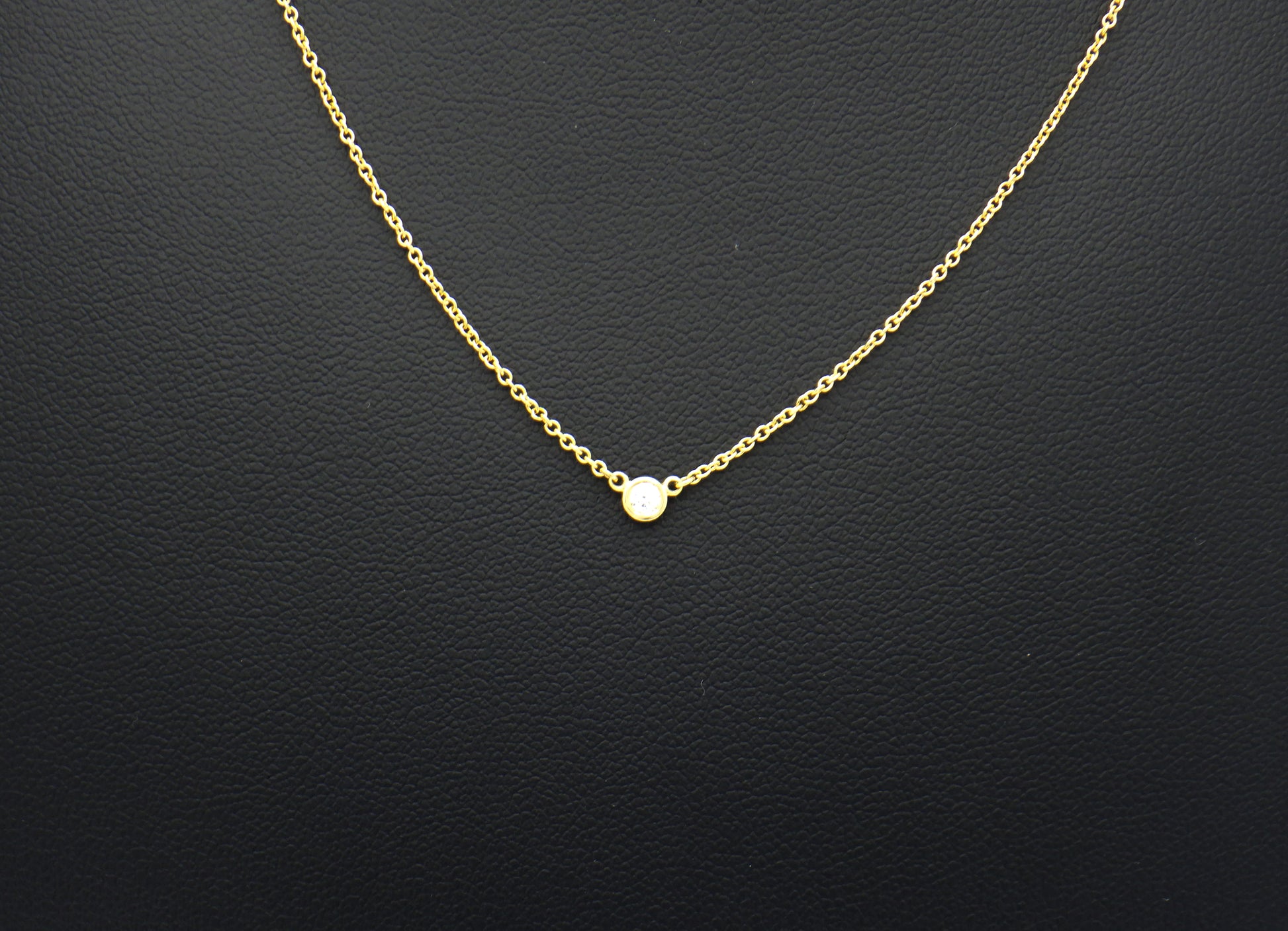 Designed by the brilliant Elsa Peretti, the "By The Yard" collection is celebrated for its timeless elegance and simplicity. A single, shimmering diamond is set on a delicate chain, creating a captivating sparkle that's perfect for any occasion.