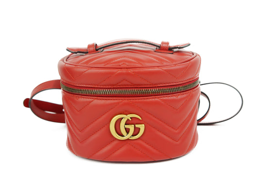 GUCCI Marmont Quilting Leather Red Mini Round Vanity Backpack Bag "Free shipping"