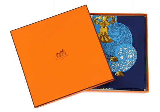 Hermes Carre 90 "L'Atlantide" Silk Scarf in Navy Blue and Multicolor / Free shipping