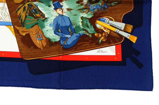 Hermes Carre 90 "Memoire d'Hermes" Silk Scarf in Navy and Multicolor / Free shipping