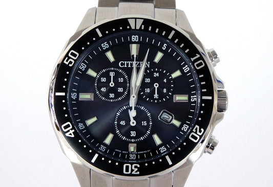 Eco-Drive Chronograph Men’s Watch – Stainless Steel, Black Dial / Free shipping
